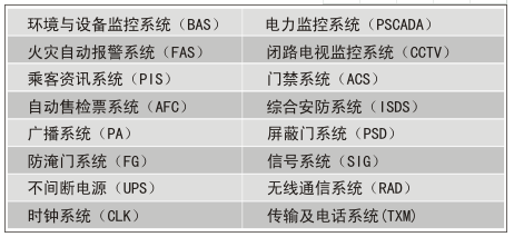 軌道交通綜合監(jiān)控系統(tǒng)主要集成和互聯(lián)以下子系統(tǒng):